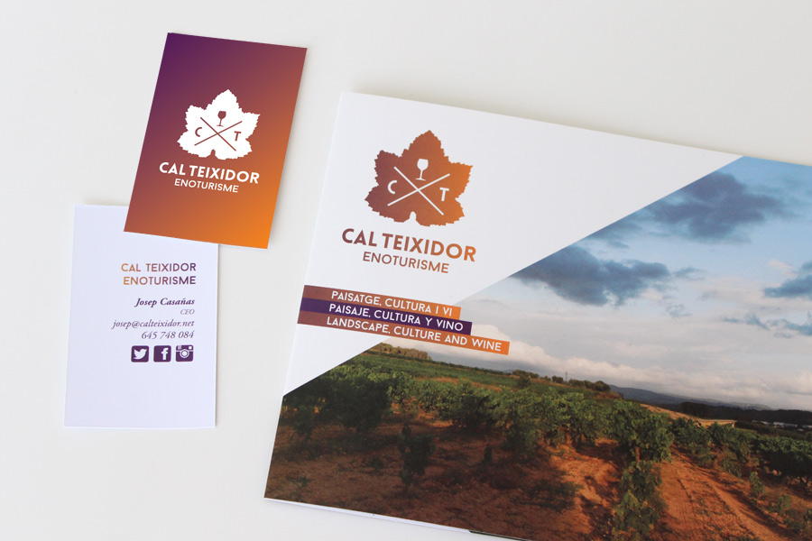 Cal Teixidor és el nom de la masia familiar del 1750, per això el símbol de la marca s’ha construït a mode d’ “escut”: és un pàmpol de Subirat Parent -el raïm característics de la finca- i les sigles CT amb una X que simbolitza la diversitat dels serveis i el dinamisme de l’empresa. Es buscava representar tradició vs modernitat.